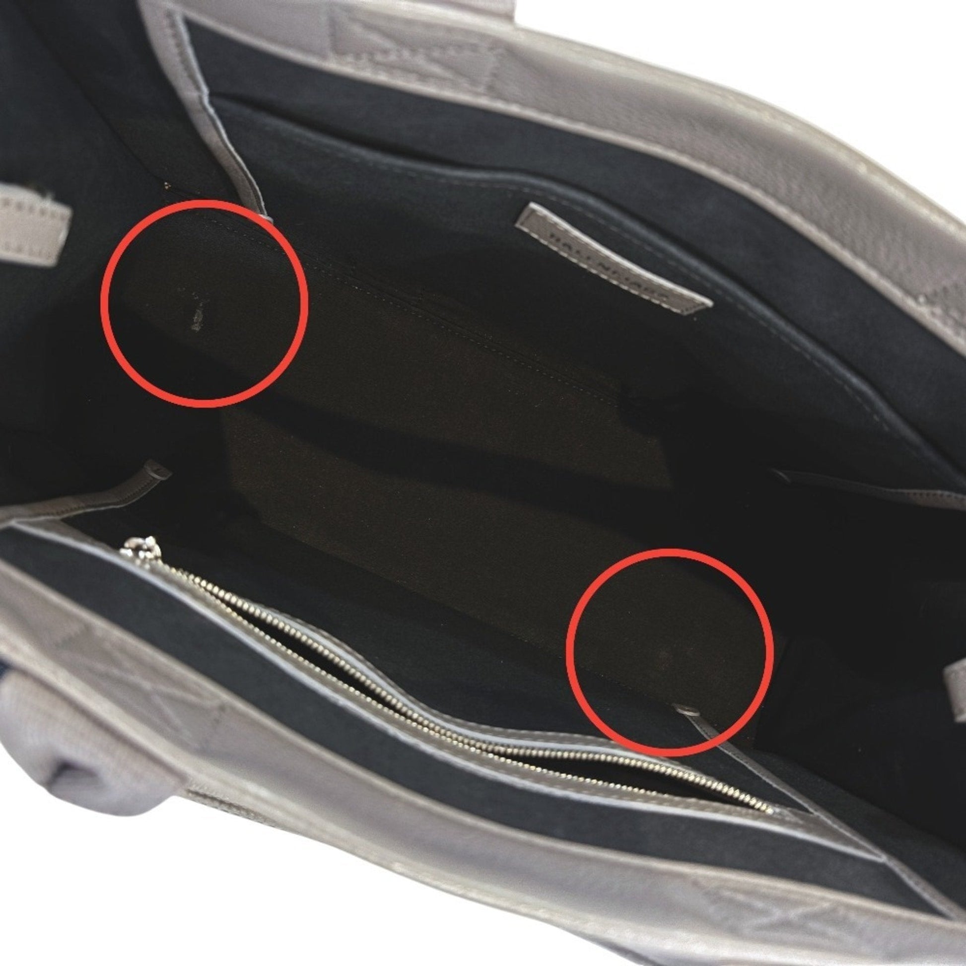 Brand: Balenciaga, Color: Gray, Material: Leather, Dimensions: 27cm x 35cm x 13cm / 10.62'' x 13.77'' x 5.11'', Condition: Rank A. Rank A Used - A few traces of usage, some scratches / dirt can be seen but overall in very good condition. Before purchasing, please refer to the images for the exact condition of the item. Before purchasing, please refer to the images of the accessories included with the item. Bag Common Damage Scratch: Slight