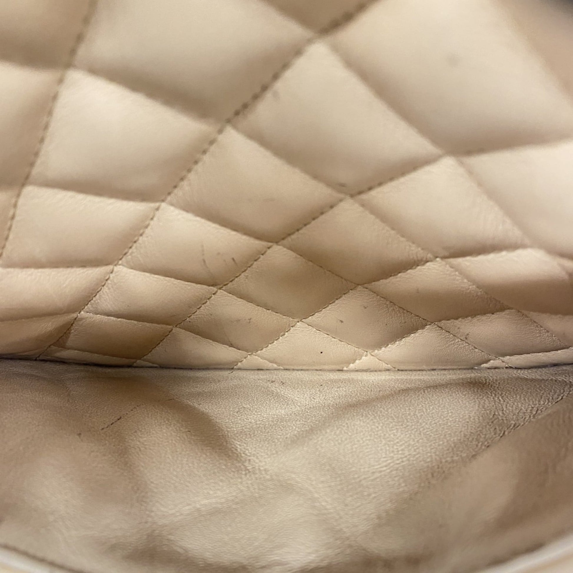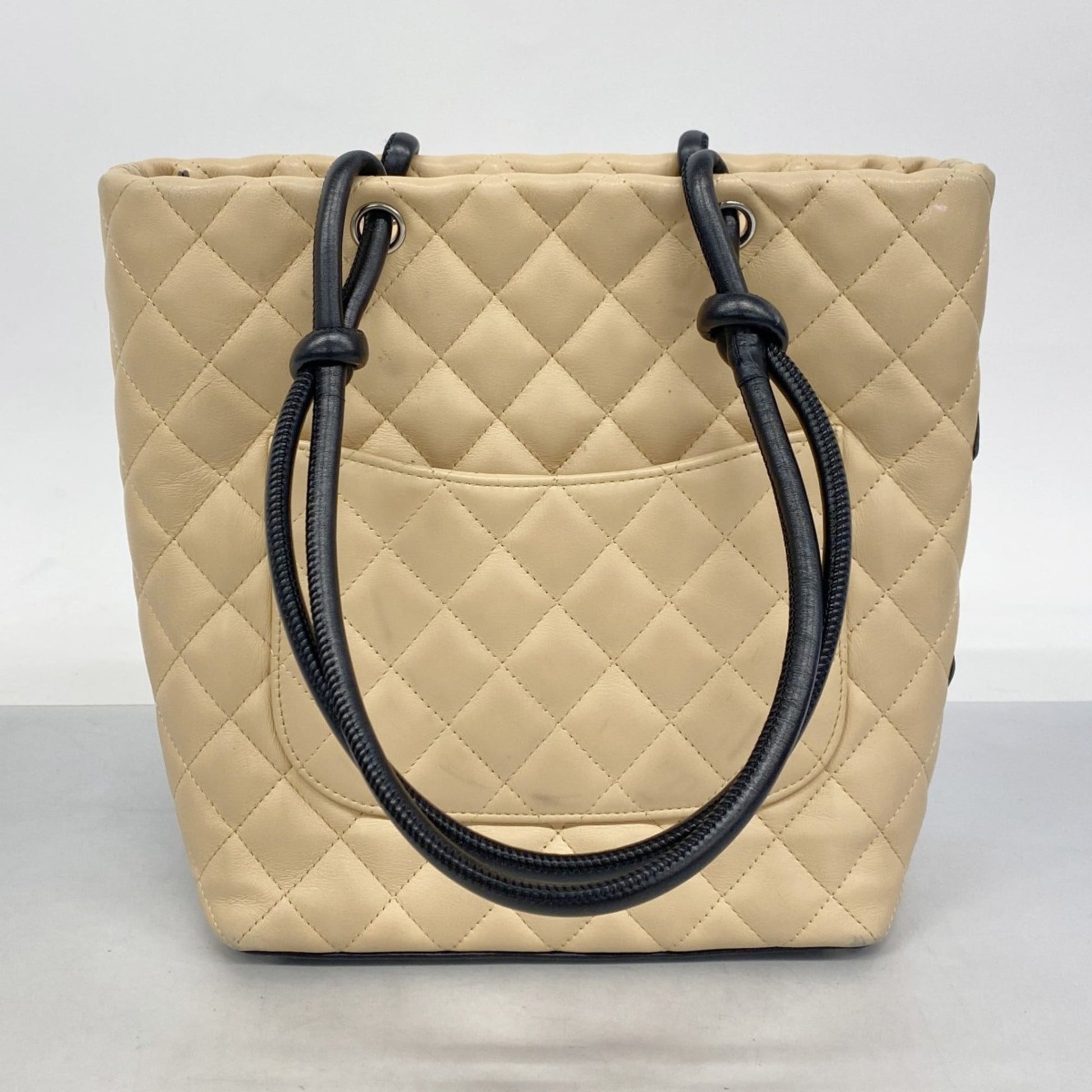 Brand: Chanel, Color: Beige, Black, Material: Leather, Dimensions: 23.5cm x 21cm x 12cm / 9.25'' x 8.26'' x 4.72'', Condition: Rank AB. Rank AB Used - Traces of usage, scratches / dirt can be seen but generally in good condition. Before purchasing, please refer to the images for the exact condition of the item. Before purchasing, please refer to the images of the accessories included with the item. Bag Common Damage Scratch: Slight