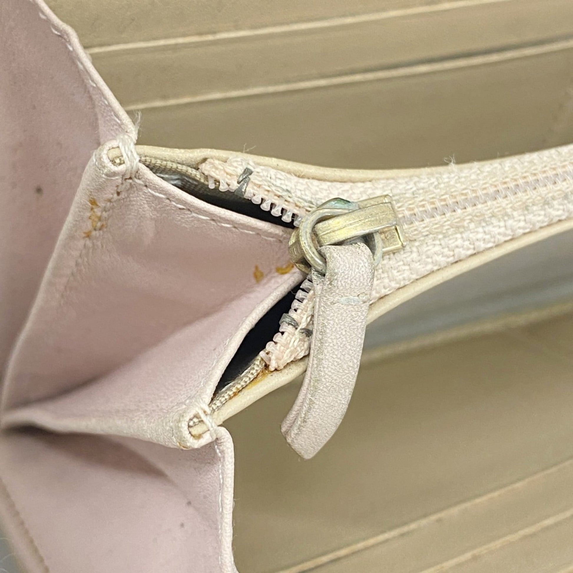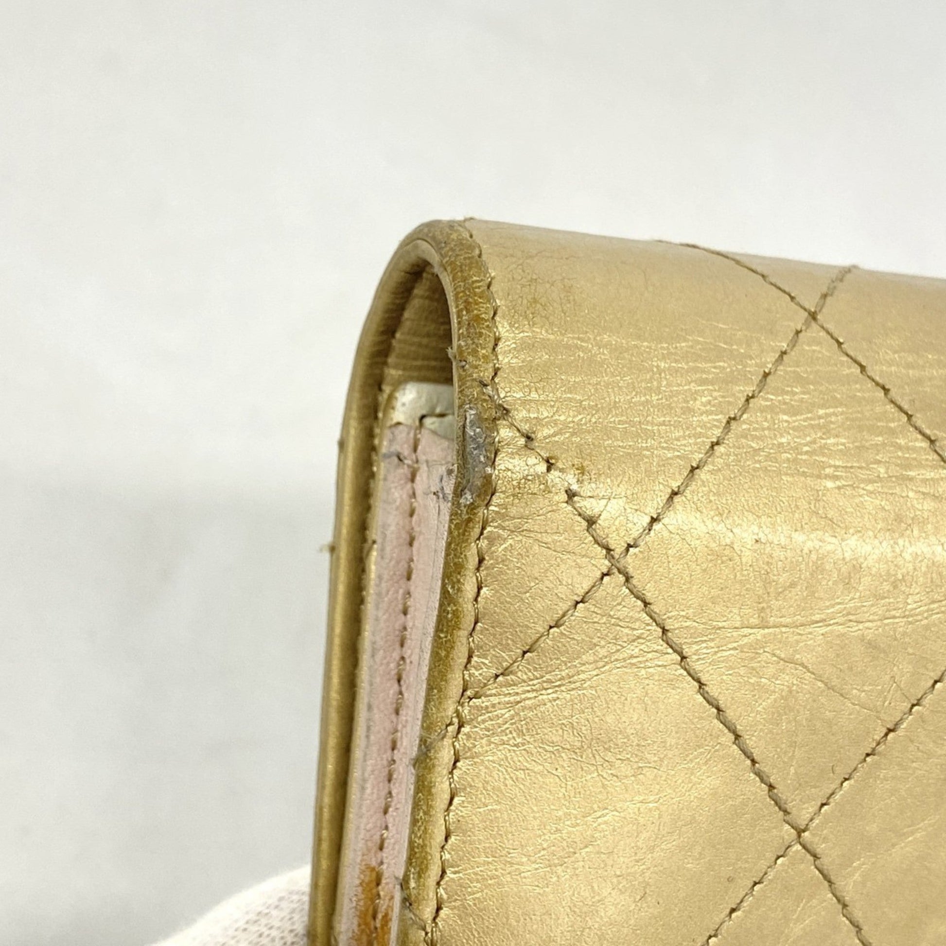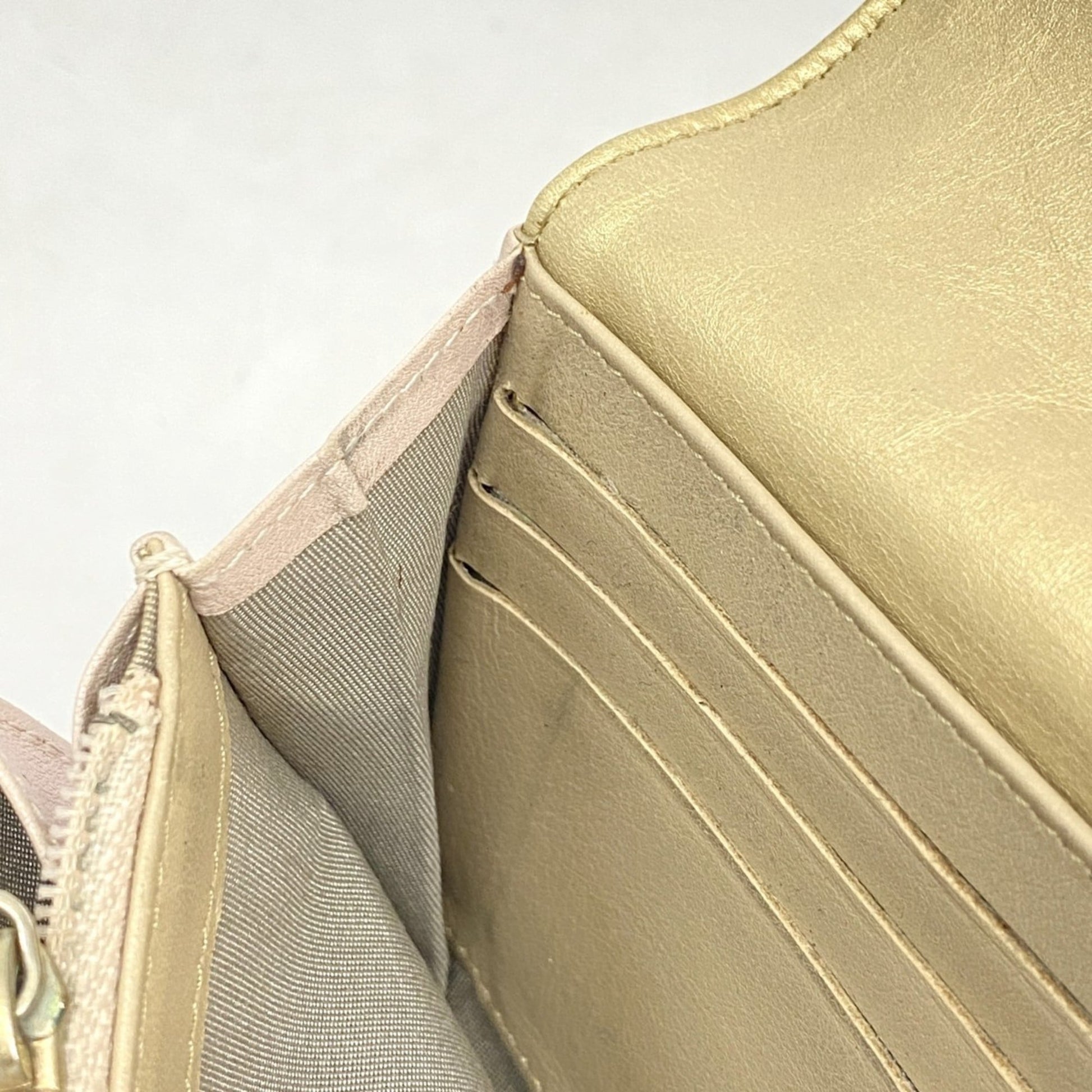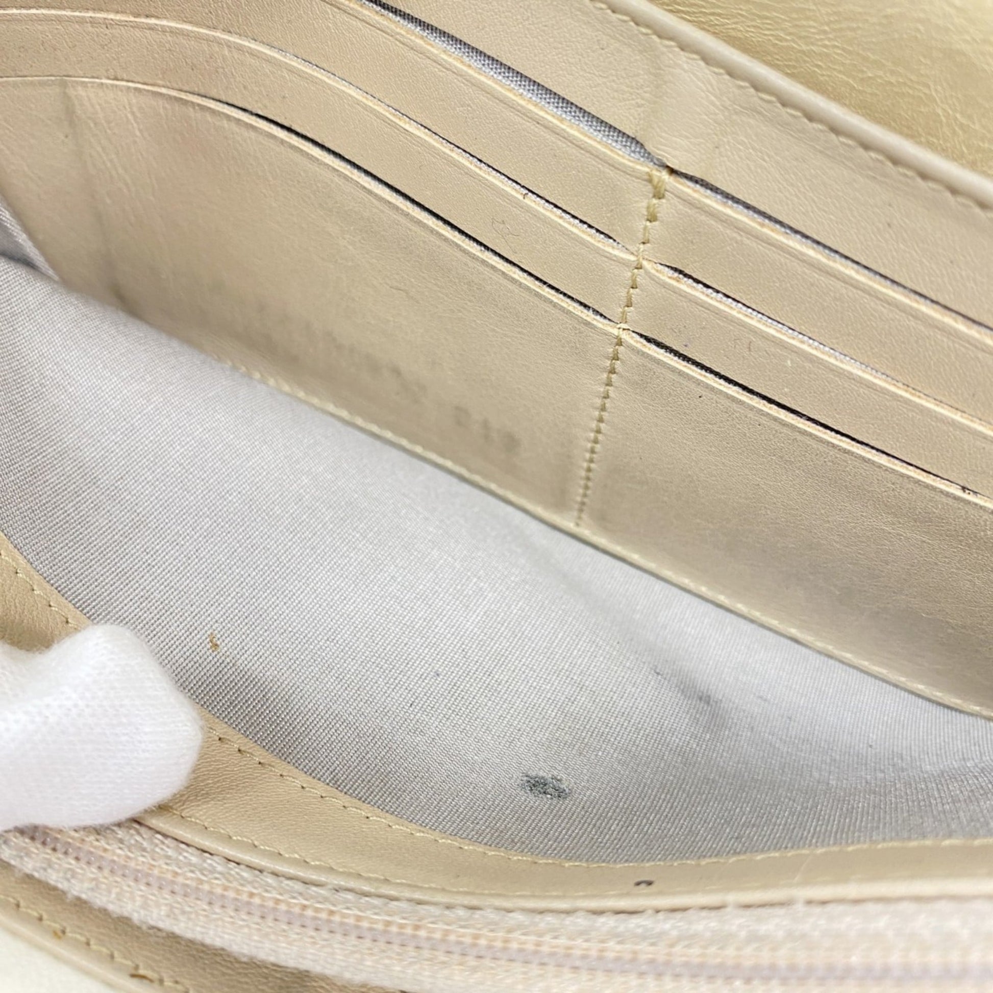 Brand: Chanel, Color: Beige, Material: Leather, Dimensions: 10cm x 19cm x 2.5cm / 3.93'' x 7.48'' x 0.98'', Condition: Rank AB. Rank AB Used - Traces of usage, scratches / dirt can be seen but generally in good condition. Before purchasing, please refer to the images for the exact condition of the item. Before purchasing, please refer to the images of the accessories included with the item. Bag Common Damage Scratch: Slight