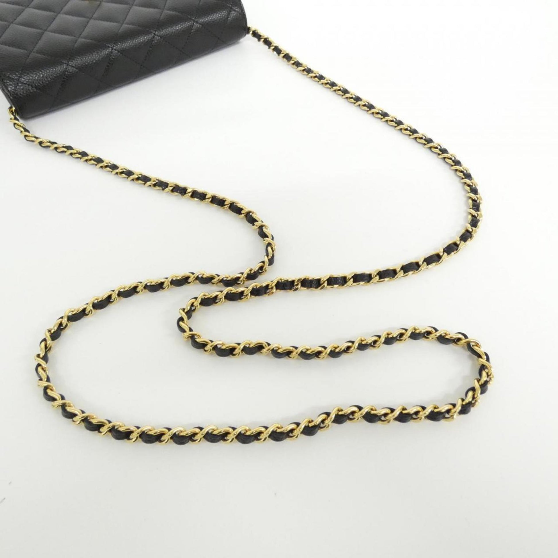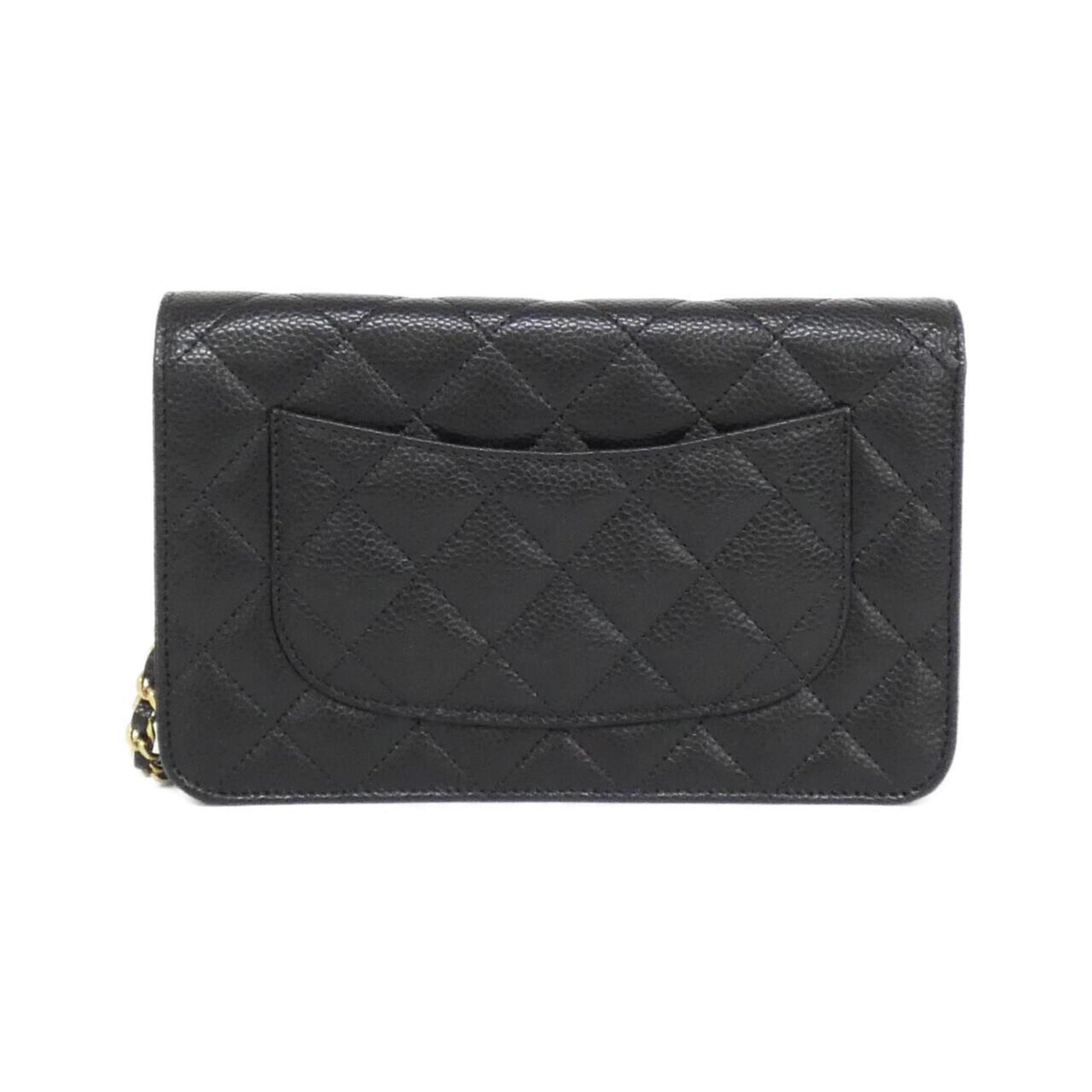 Chanel Black Bordeaux Grained Calfskin Chain/Shoulder Wallet (Pre-Owned)