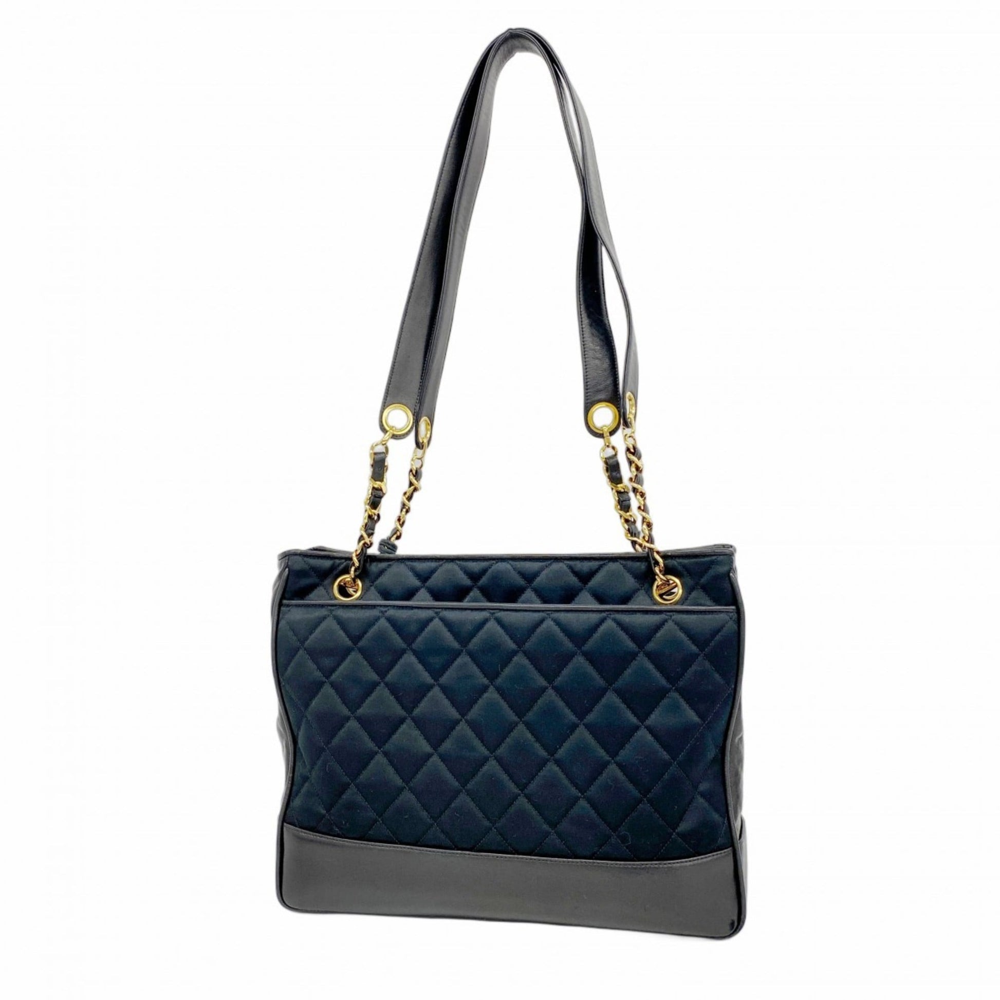 Brand: Chanel, Color: Black, Material: Leather, Satin, Dimensions: 25.5cm x 32.5cm x 7.5cm / 10.03'' x 12.79'' x 2.95'', Condition: Rank AB. Rank AB Used - Traces of usage, scratches / dirt can be seen but generally in good condition. Before purchasing, please refer to the images for the exact condition of the item. Before purchasing, please refer to the images of the accessories included with the item. Bag Common Damage Scratch: Slight