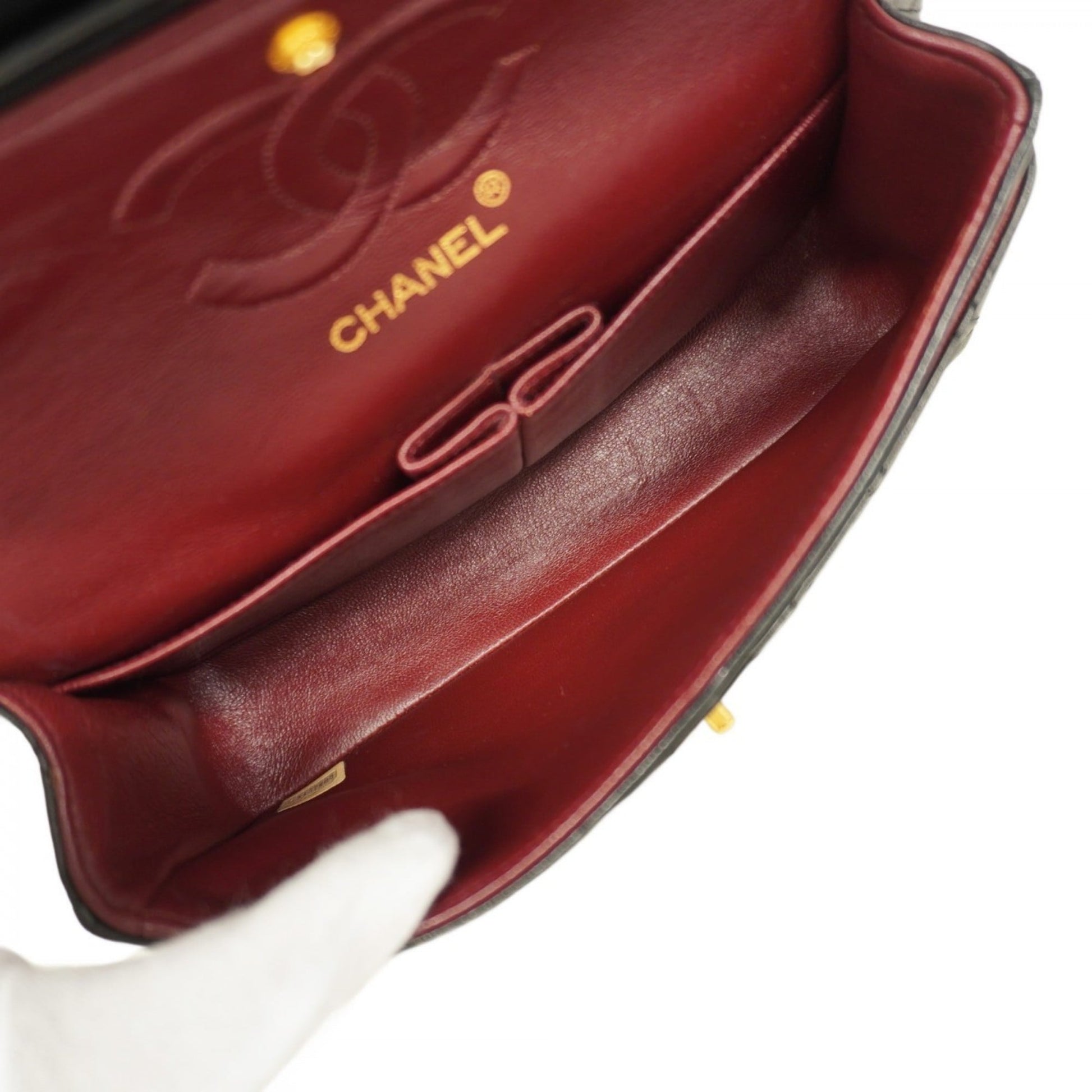 Brand: Chanel, Color: Black, Material: Leather, Dimensions: 15cm x 23cm x 6.5cm / 5.9'' x 9.05'' x 2.55'', Condition: Rank AB. Rank AB Used - Traces of usage, scratches / dirt can be seen but generally in good condition. Before purchasing, please refer to the images for the exact condition of the item. Before purchasing, please refer to the images of the accessories included with the item. Bag Common Damage Scratch: Slight