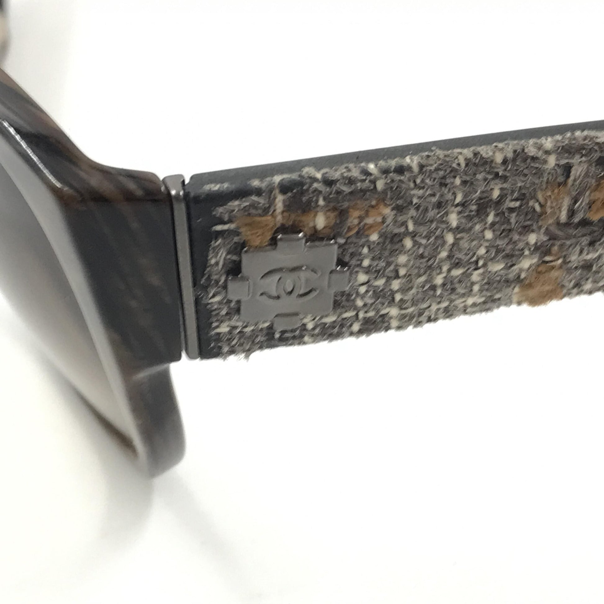 Chanel Brown Frame With Tweed Accents Women's Sunglasses (Pre-Owned)