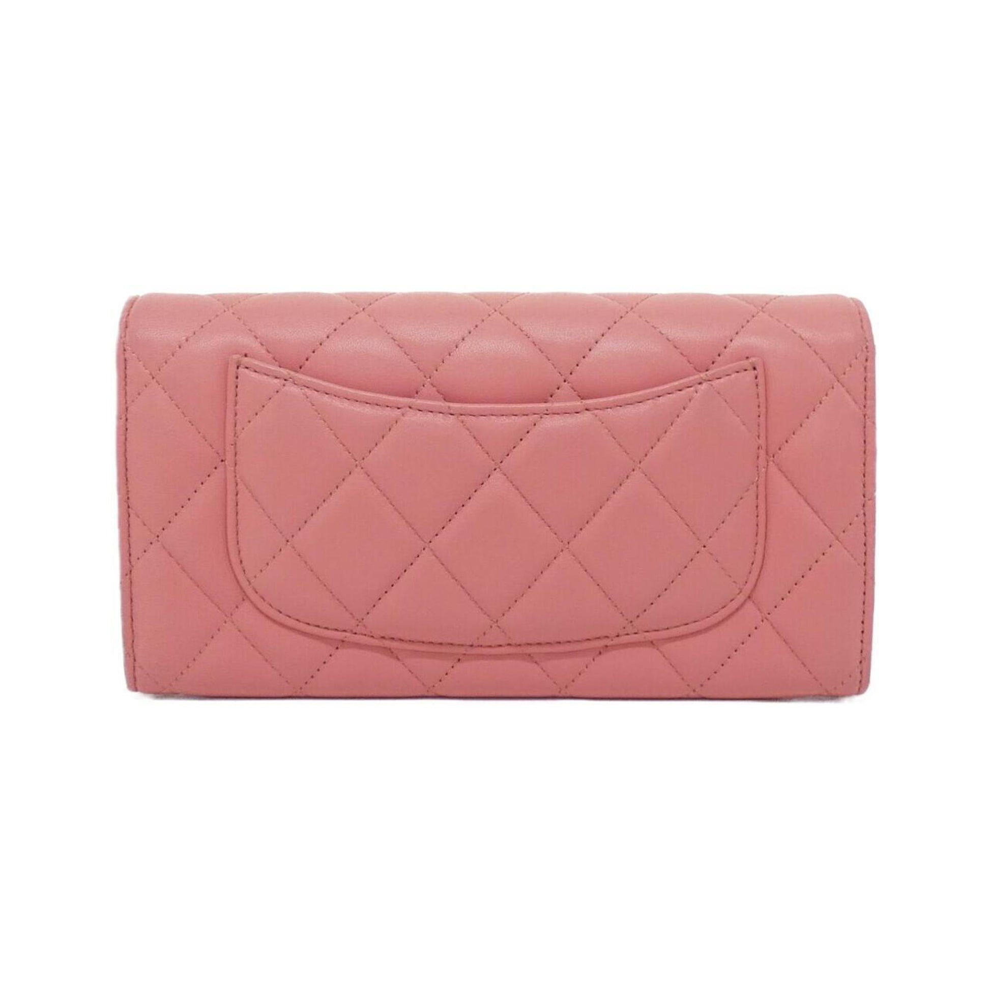 Chanel Pink Leather Long Wallet (Bi-Fold) (Pre-Owned)