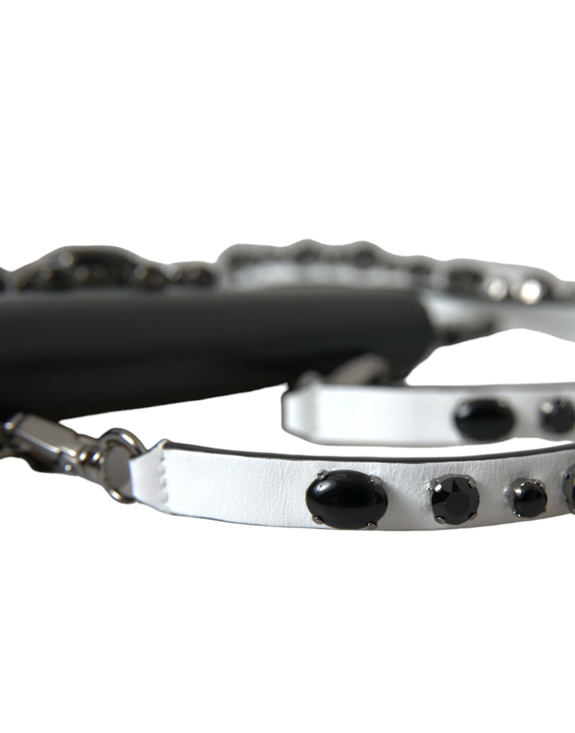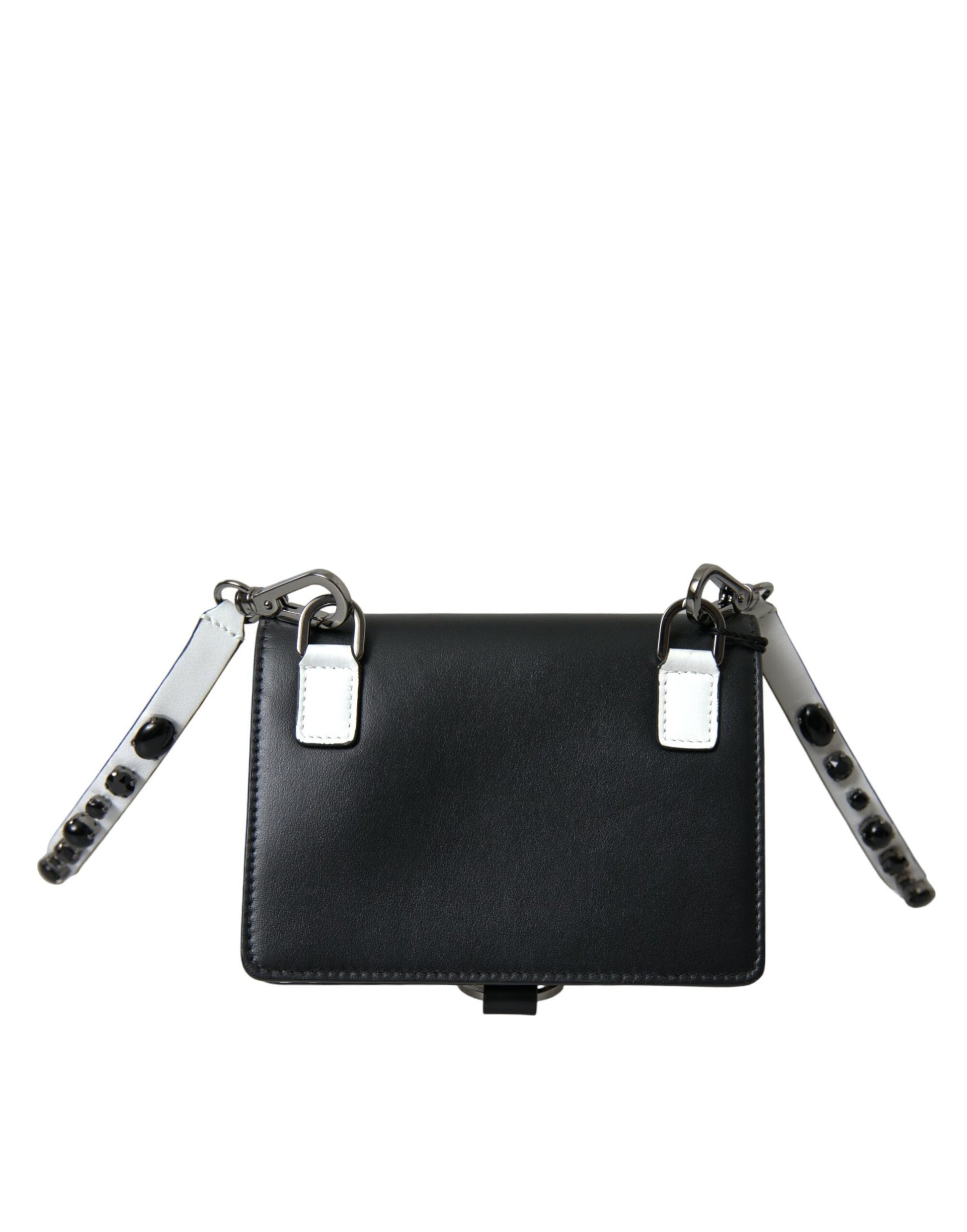 Dolce & Gabbana Black White Leather Crystal Embellished Cardholder Women's Wallet