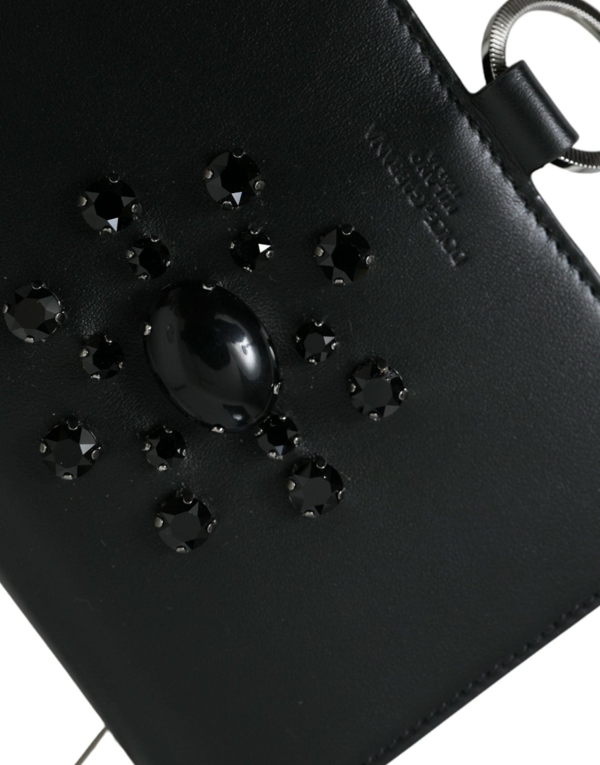 Gorgeous brand new with tags, 100% Authentic Dolce & Gabbana calf leather cardholder featuring crystal embellishment, snap-button fastening, internal card slots and detachable neck strap.