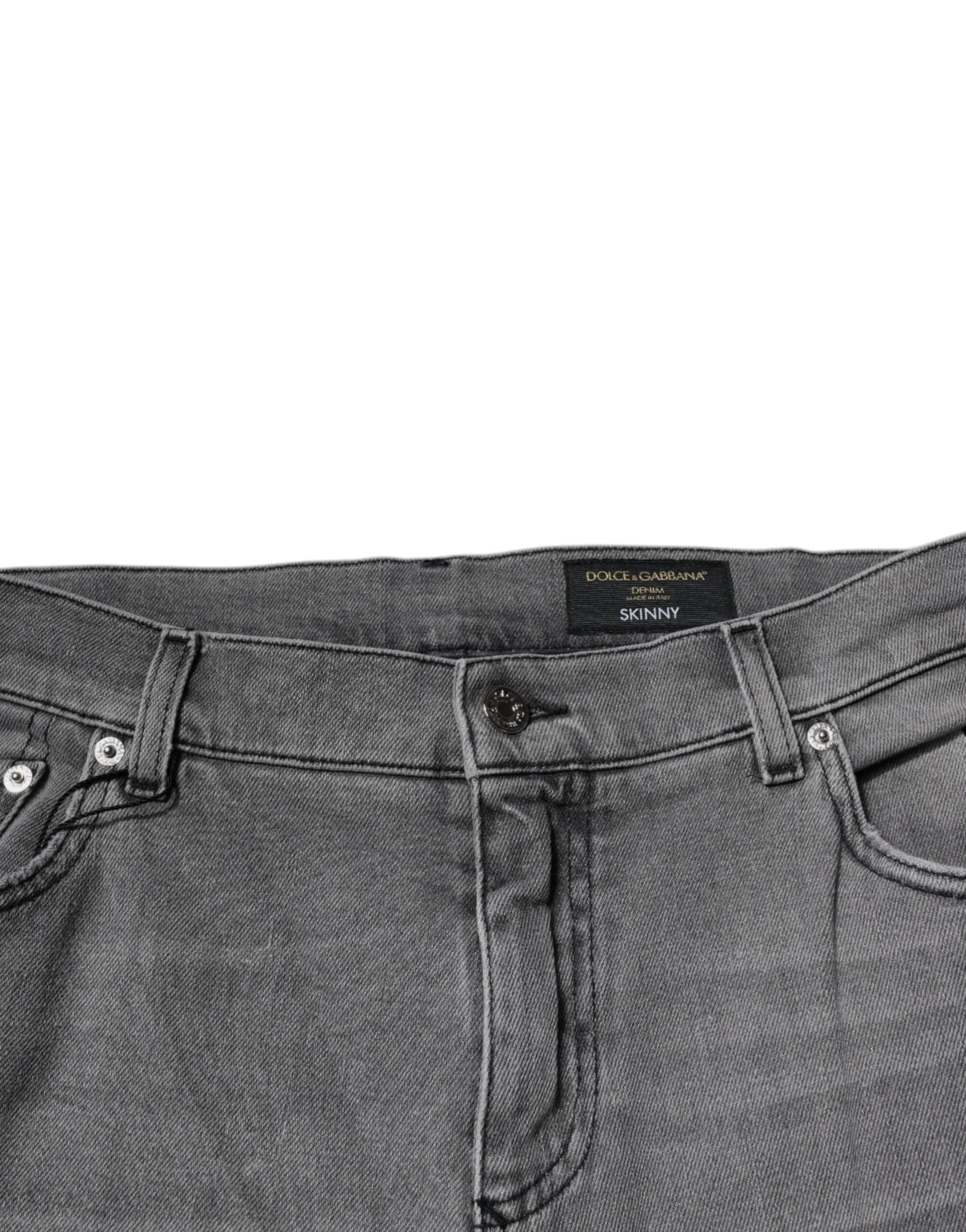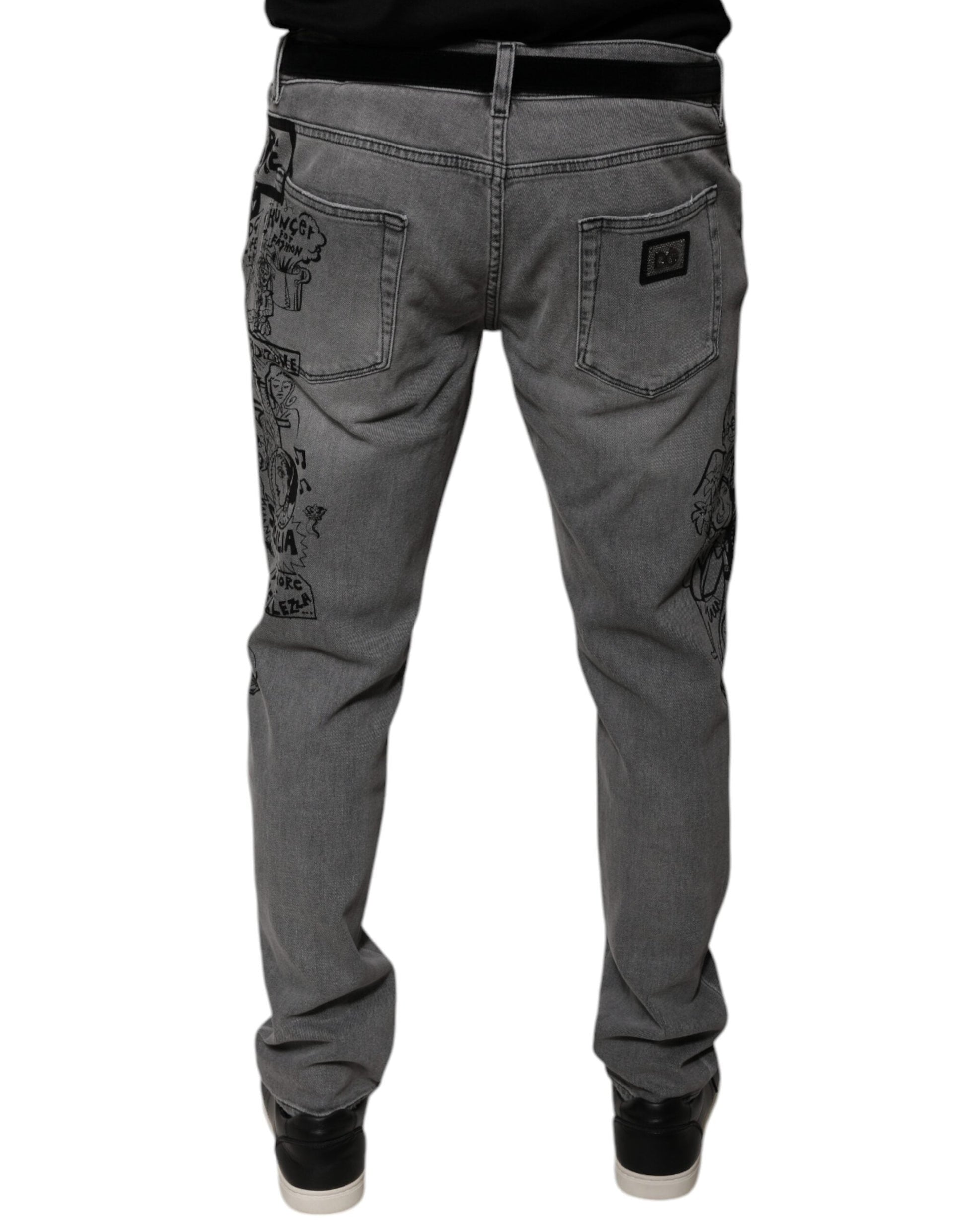 Dolce & Gabbana Gray Graphic Print Cotton Skinny Denim Men's Jeans