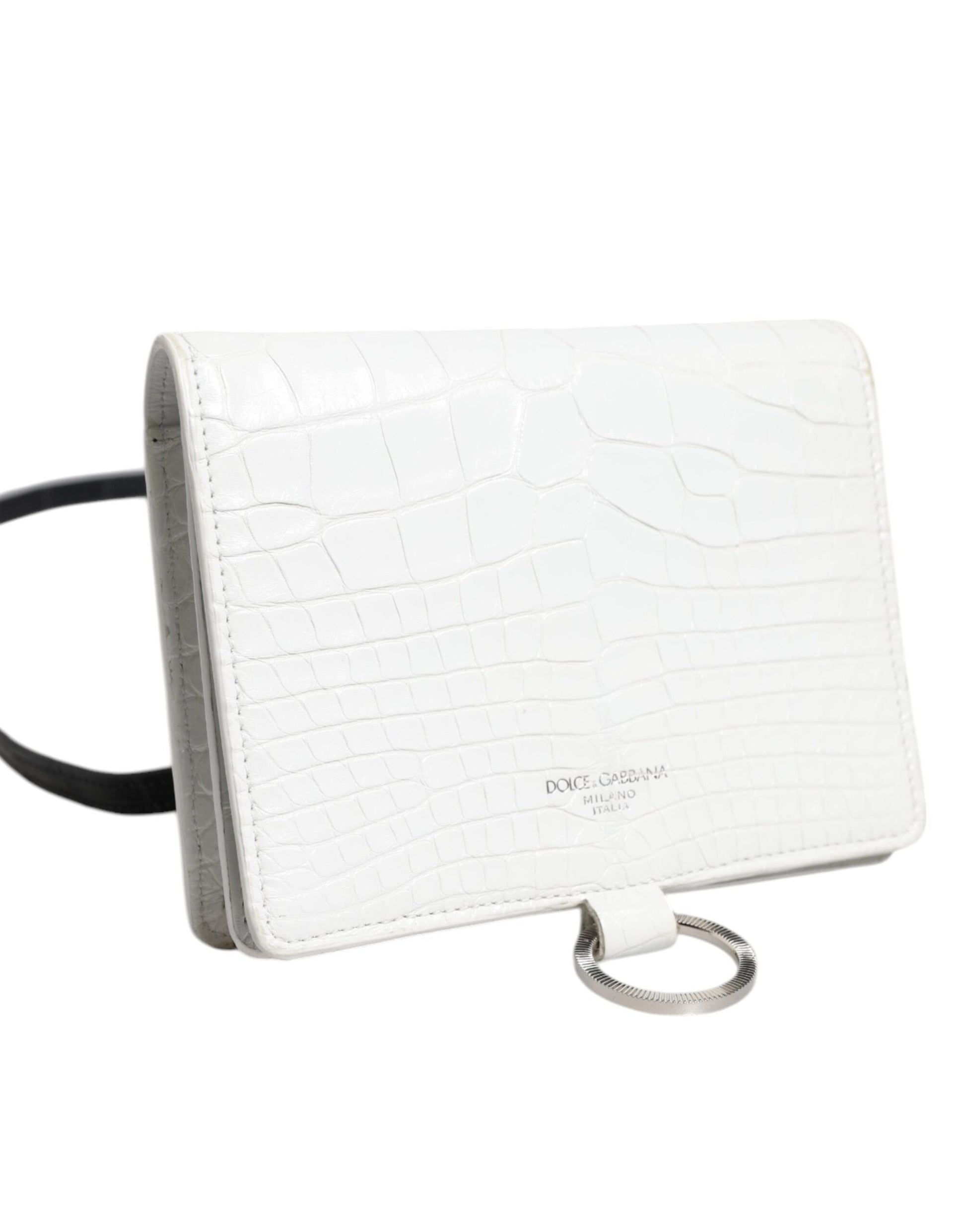 Dolce & Gabbana White Blue Leather Bifold Crossbody Sling Women's Wallet (Pre-Owned)