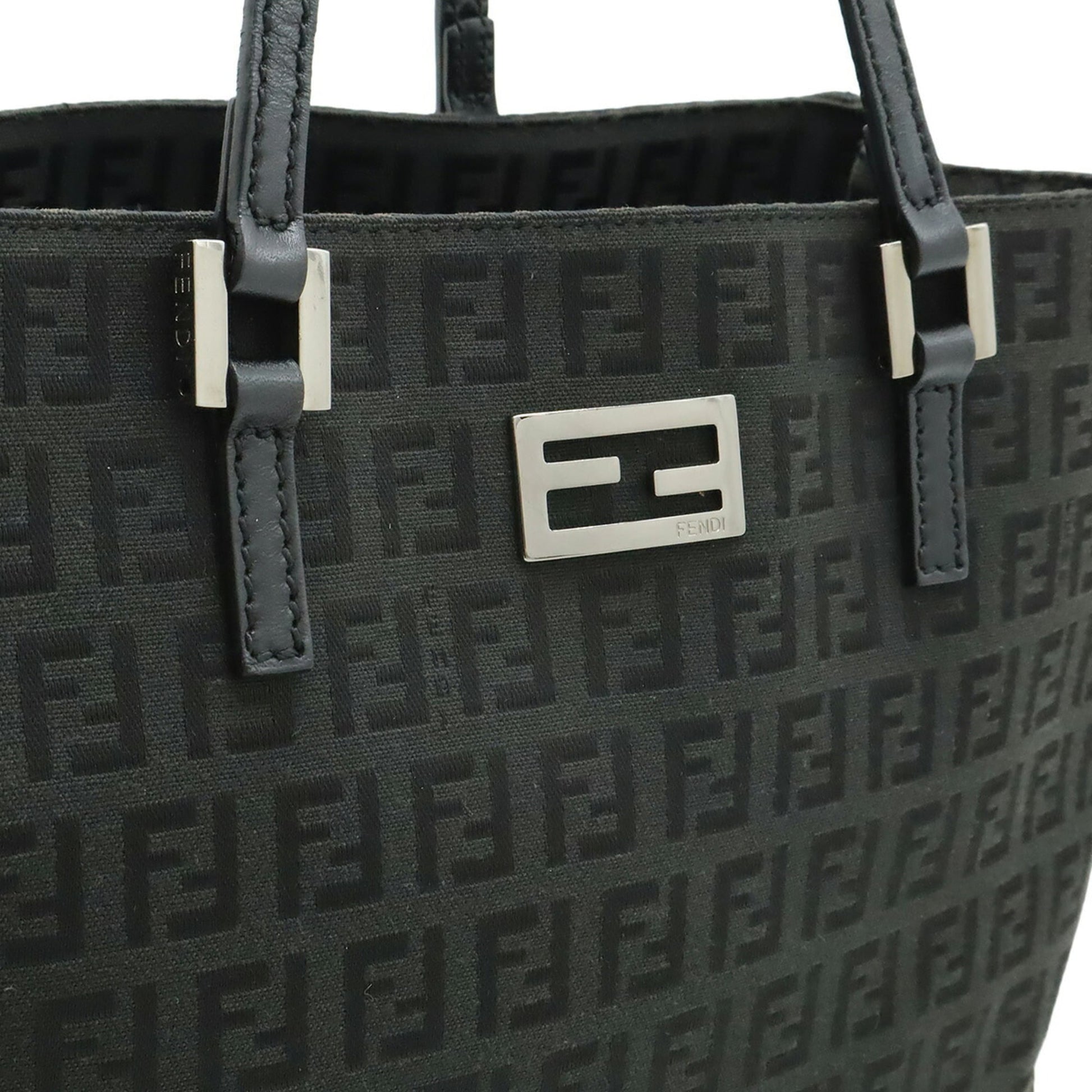 Fendi Black Canvas Leather Handbag Tote Bag (Pre-Owned)