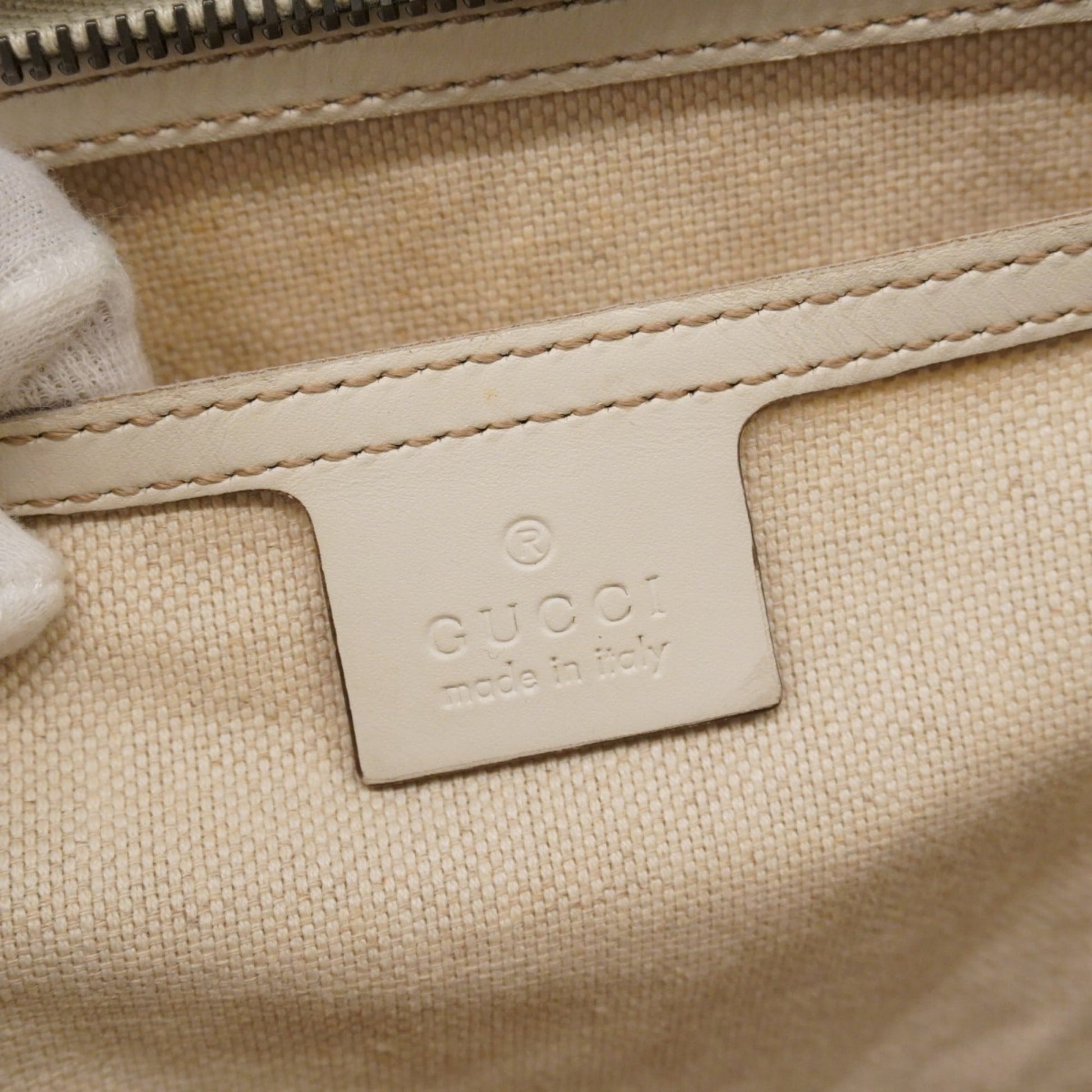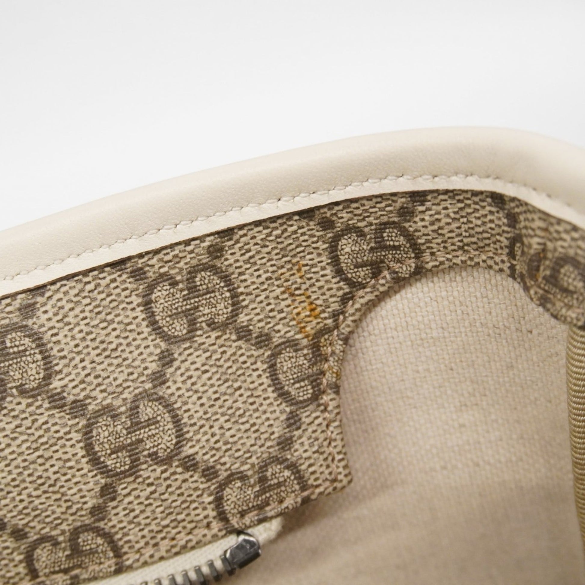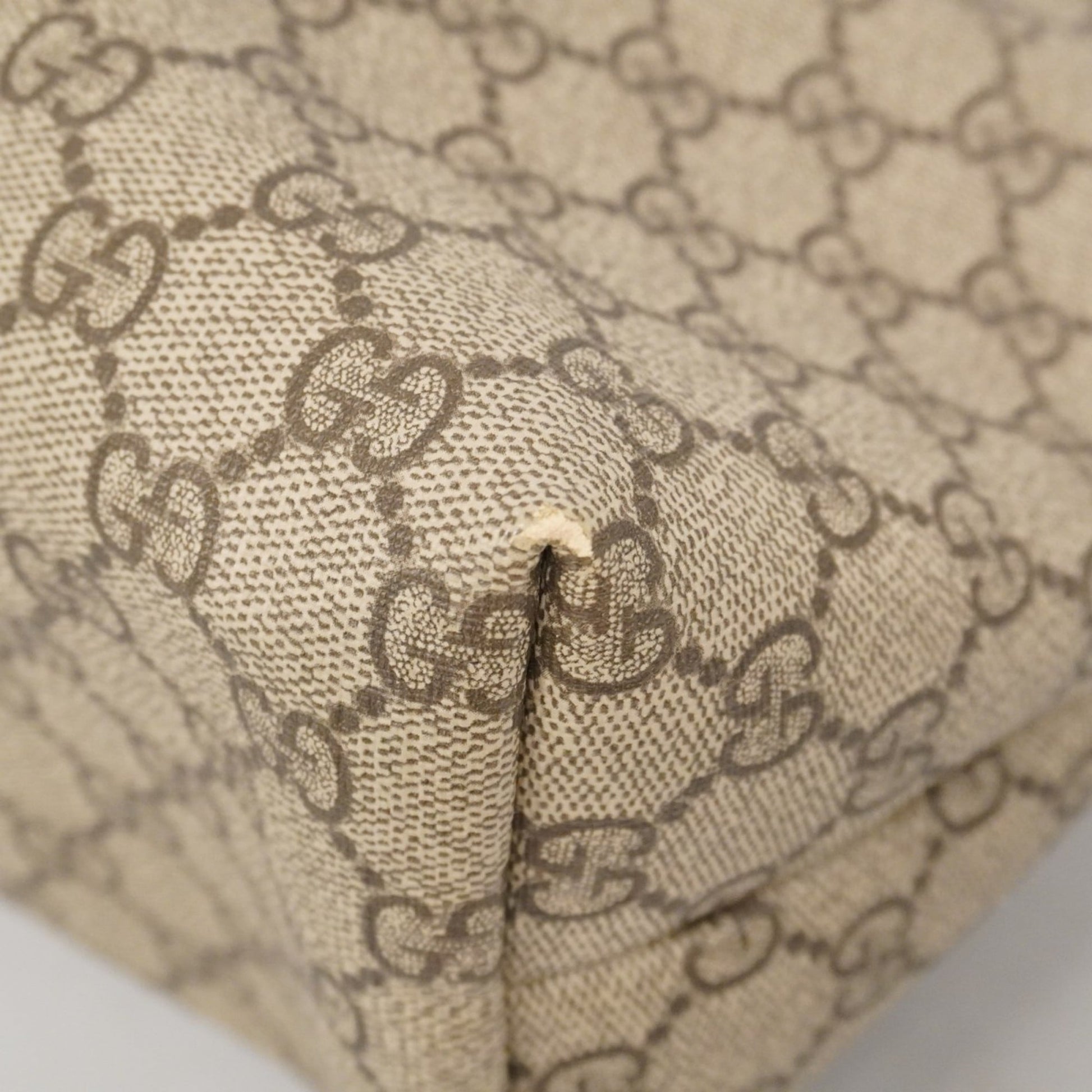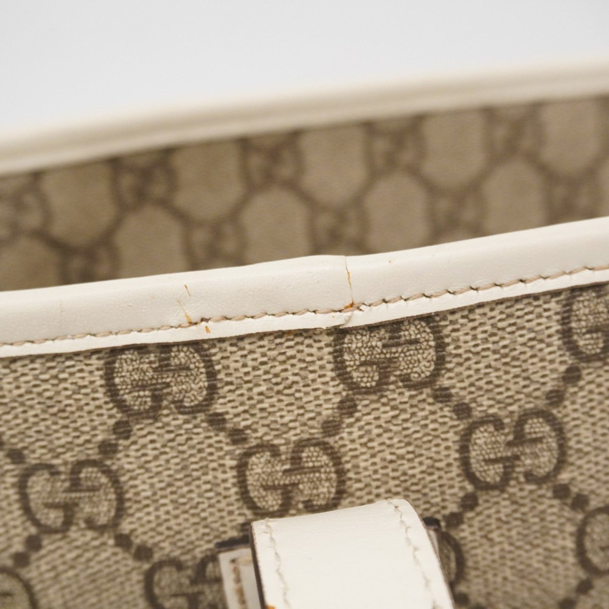 Brand: Gucci, Color: Brown, White, Material: PVC, Dimensions: 27.5cm x 37cm x 12cm / 10.82'' x 14.56'' x 4.72'', Condition: Rank AB. Rank AB Used - Traces of usage, scratches / dirt can be seen but generally in good condition. Before purchasing, please refer to the images for the exact condition of the item. Before purchasing, please refer to the images of the accessories included with the item. Damage Ranking: Slight