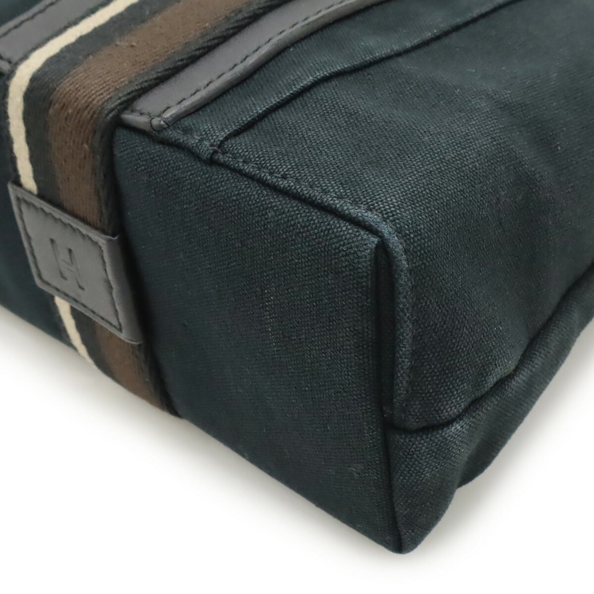 Brand: Hermes, Color: Beige, Black, Brown, Material: Canvas, Leather, Dimensions: 20cm x 30.5cm x 8cm / 7.87'' x 12'' x 3.14'', Condition: Rank B. Rank B Used - Traces of usage, damages / dirt can be seen but it is still in acceptable condition for continued usage. Before purchasing, please refer to the images for the exact condition of the item. Before purchasing, please refer to the images of the accessories included with the item. Damage Ranking: -