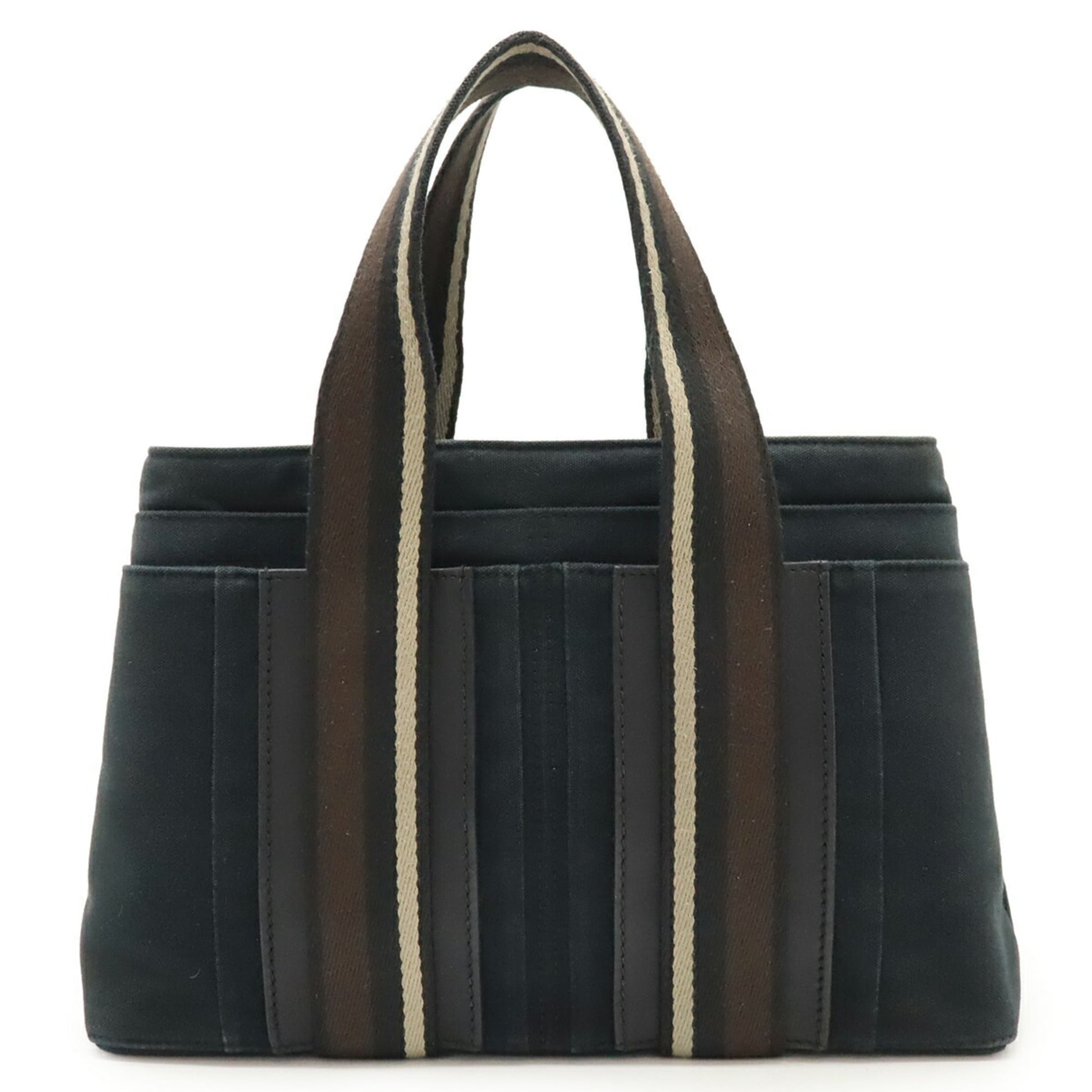 Hermes Beige Black Brown Canvas Leather Handbag Tote Bag (Pre-Owned)
