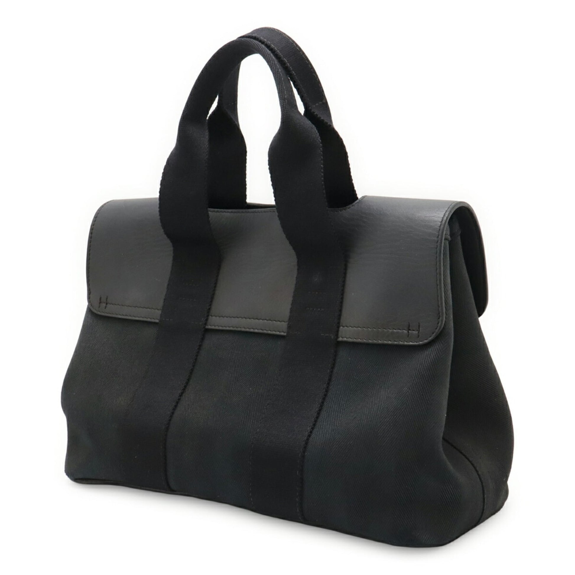 Brand: Hermes, Color: Black, Material: Toile chevron, Leather, Dimensions: 20.5cm x 30.5cm x 13.5cm / 8.07'' x 12'' x 5.31'', Country of Origin: France, Condition: Rank B. Rank B Used - Traces of usage, damages / dirt can be seen but it is still in acceptable condition for continued usage. Before purchasing, please refer to the images for the exact condition of the item. Before purchasing, please refer to the images of the accessories included with the item. Damage Ranking: Insignificant