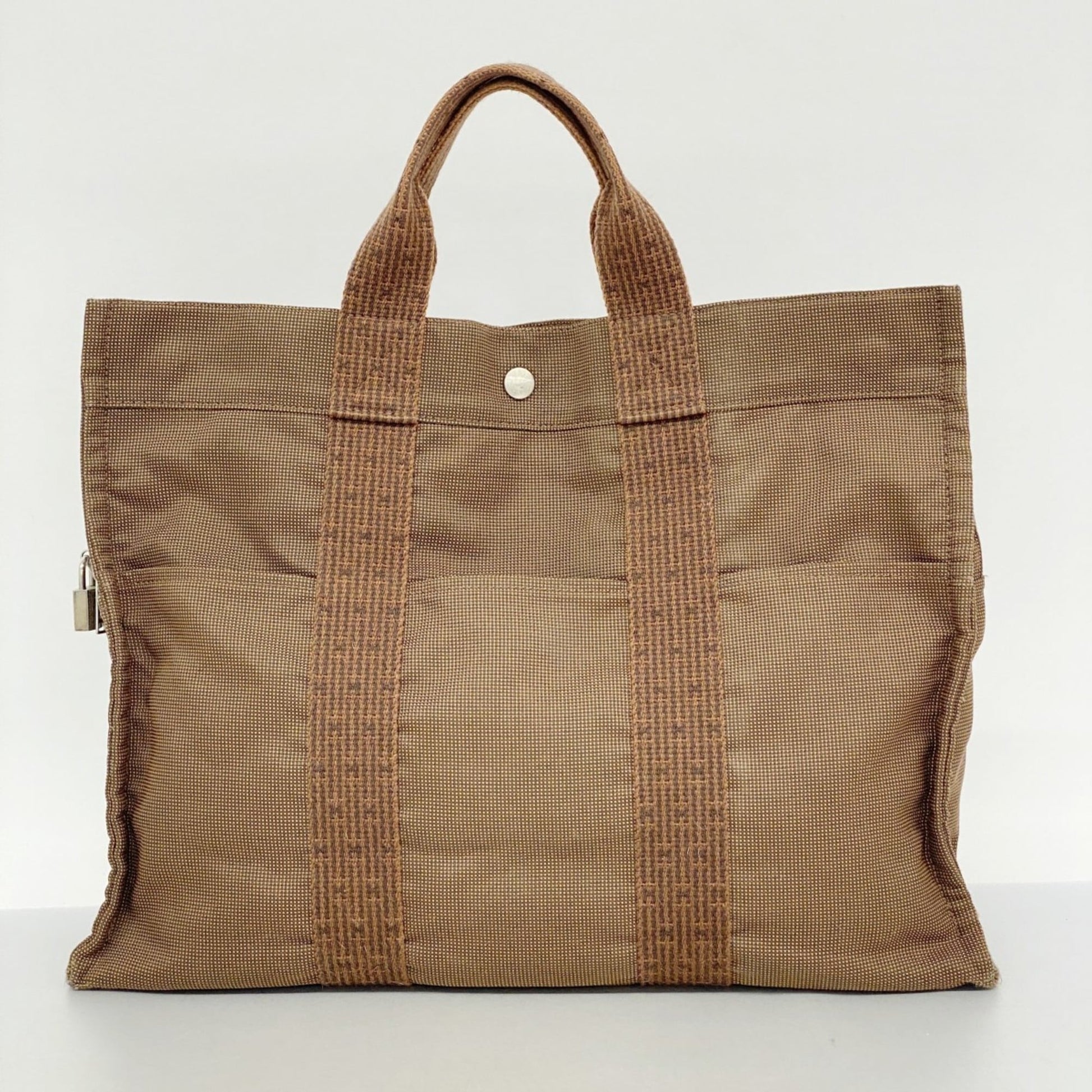 Brand: Hermes, Color: Brown, Material: Canvas, Dimensions: 33cm x 42cm x 11cm / 12.99'' x 16.53'' x 4.33'', Condition: Rank AB. Rank AB Used - Traces of usage, scratches / dirt can be seen but generally in good condition. Before purchasing, please refer to the images for the exact condition of the item. Before purchasing, please refer to the images of the accessories included with the item. Damage Ranking: Slight