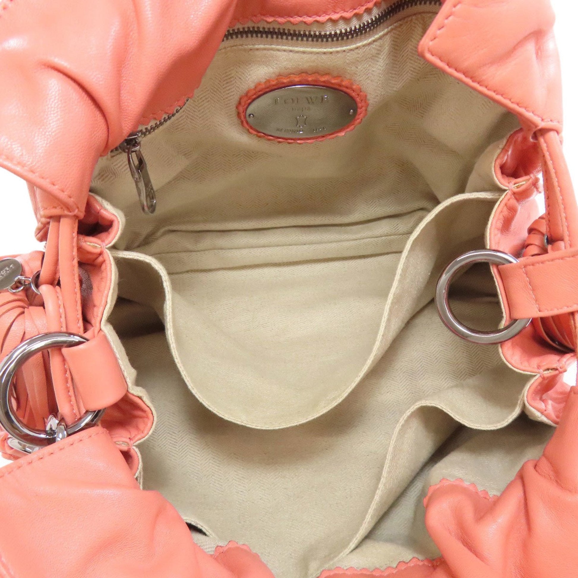 Brand: Loewe, Color: Pink, Material: Leather, Dimensions: 27cm x 28cm x 9cm / 10.62'' x 11.02'' x 3.54'', Condition: Rank AB. Rank AB Used - Traces of usage, scratches / dirt can be seen but generally in good condition. Before purchasing, please refer to the images for the exact condition of the item. Before purchasing, please refer to the images of the accessories included with the item. Damage Ranking: -