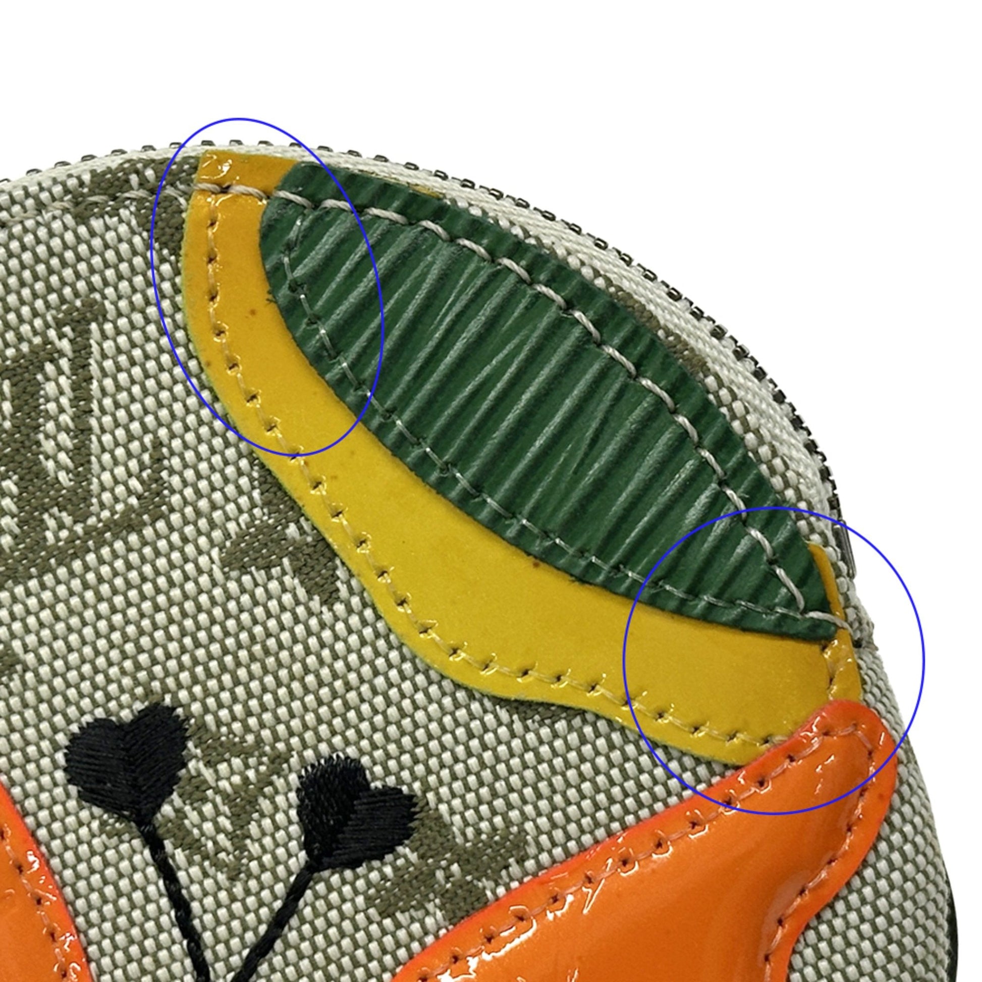 Brand: Louis Vuitton, Color: Green, Multi-color, Yellow, Material: Canvas, Leather, Dimensions: 9.5cm x 9.5cm / 3.74'' x 3.74'', Country of Origin: France, Condition: Rank AB. Rank AB Used - Traces of usage, scratches / dirt can be seen but generally in good condition. Before purchasing, please refer to the images for the exact condition of the item. Before purchasing, please refer to the images of the accessories included with the item. Damage Ranking: Slight