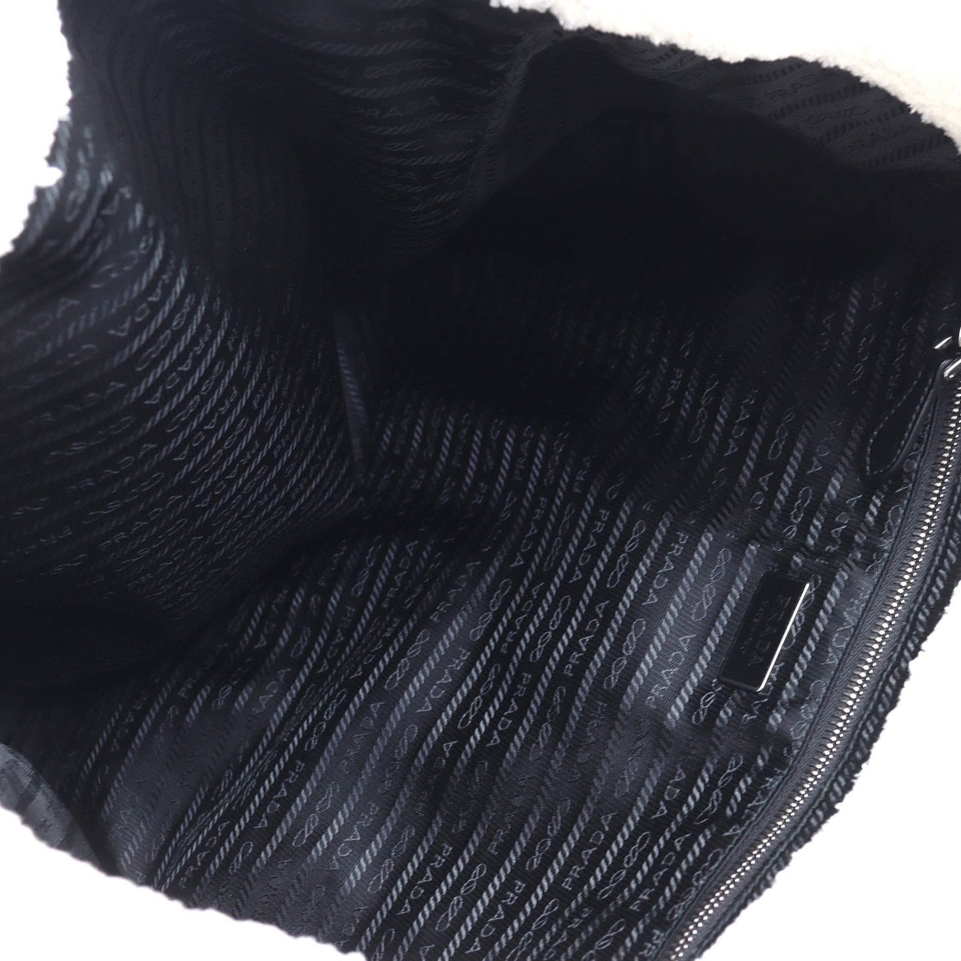 Brand: Prada, Color: Black, White, Material: Polyester, Leather, Dimensions: 35cm x 44cm x 15cm / 13.77'' x 17.32'' x 5.9'', Condition: Rank A. Rank A Used - A few traces of usage, some scratches / dirt can be seen but overall in very good condition. Before purchasing, please refer to the images for the exact condition of the item. Before purchasing, please refer to the images of the accessories included with the item. Bag Common Damage Scratch: Slight