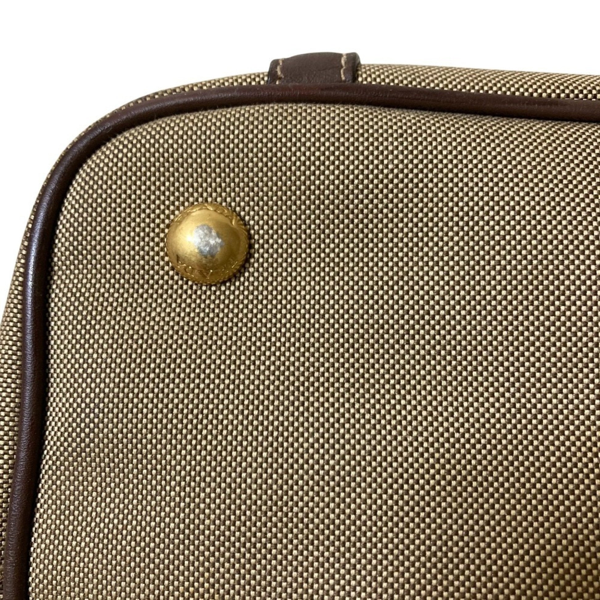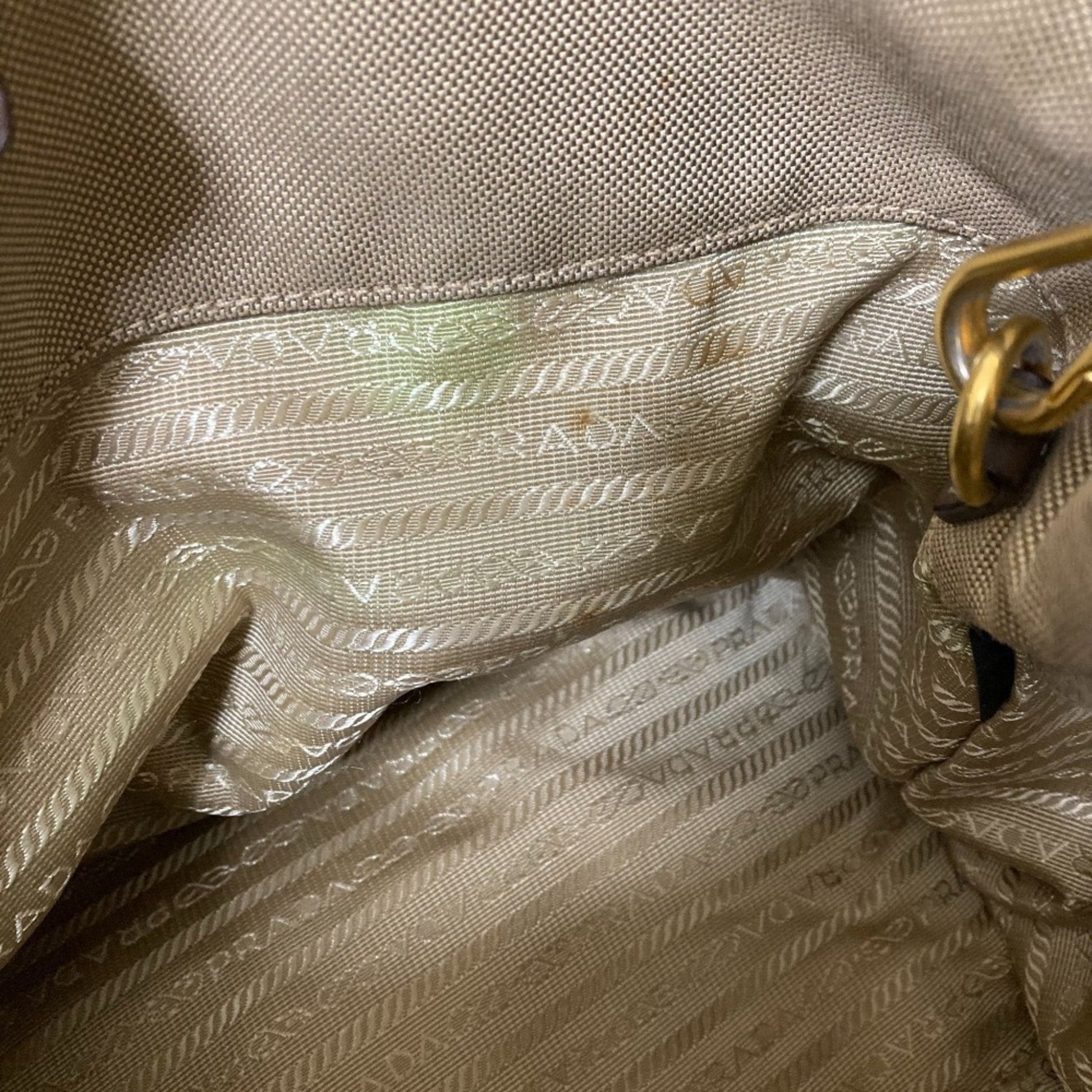 Brand: Prada, Color: Khaki brown, Dimensions: 22cm x 40cm x 17cm / 8.66'' x 15.74'' x 6.69'', Condition: Rank B. Rank B Used - Traces of usage, damages / dirt can be seen but it is still in acceptable condition for continued usage. Before purchasing, please refer to the images for the exact condition of the item. Before purchasing, please refer to the images of the accessories included with the item. Damage Ranking: Moderate