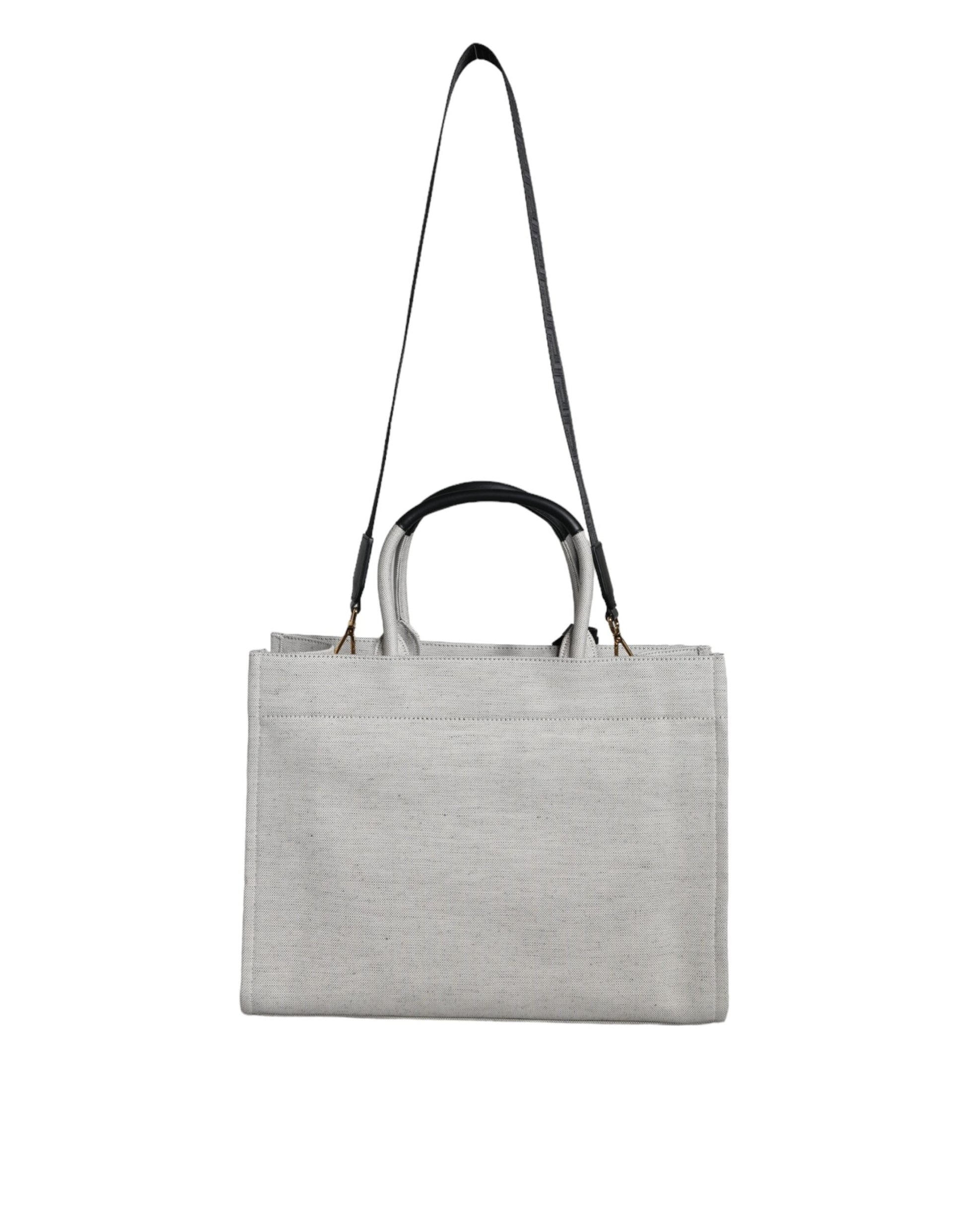 Versace White Top Handle Canvas Leather Logo Crossbody Tote Women's Bag
